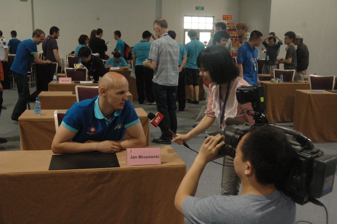 Cały następny dzień upłynął pod znakiem rund eliminacyjnych. W przerwach niektórym z nas udało się udzielić kilku wywiadów dla wszechobecnych przedstawicili prasy, radia czy telewizji (nie tylko chińskiej!). Chyba po raz pierwszy poczuliśmy się jak uczestnicy ważnych zawodów, a nie grupa anonimowych zapaleńców z całego świata spotykająca się raz do roku aby wspólnie porozwiązywać zadania. Mimo profesjonalnej otoczki i realnej możliwości wzbogacenia się nie można było odczuć niechęci czy niezdrowej rywalizacji między uczestnikami. Wszyscy byli jak zawsze przyjaźnie do siebie nastawieni.