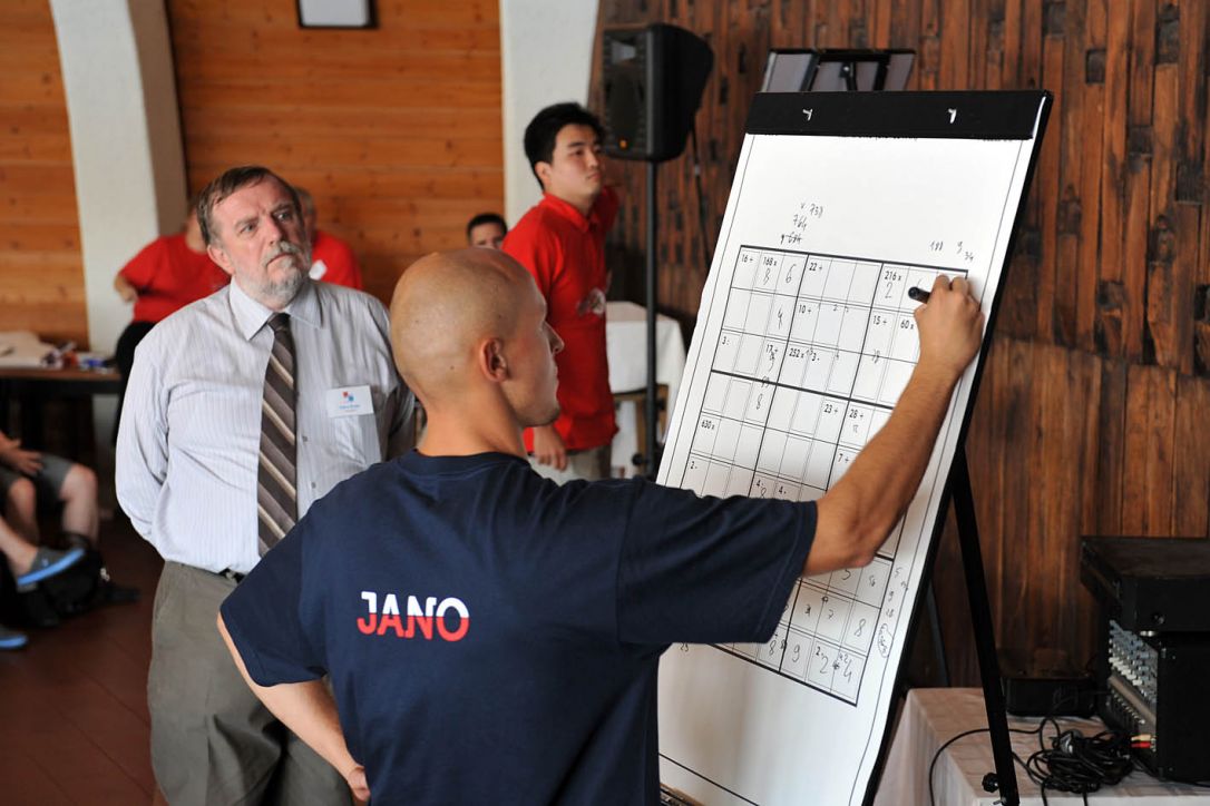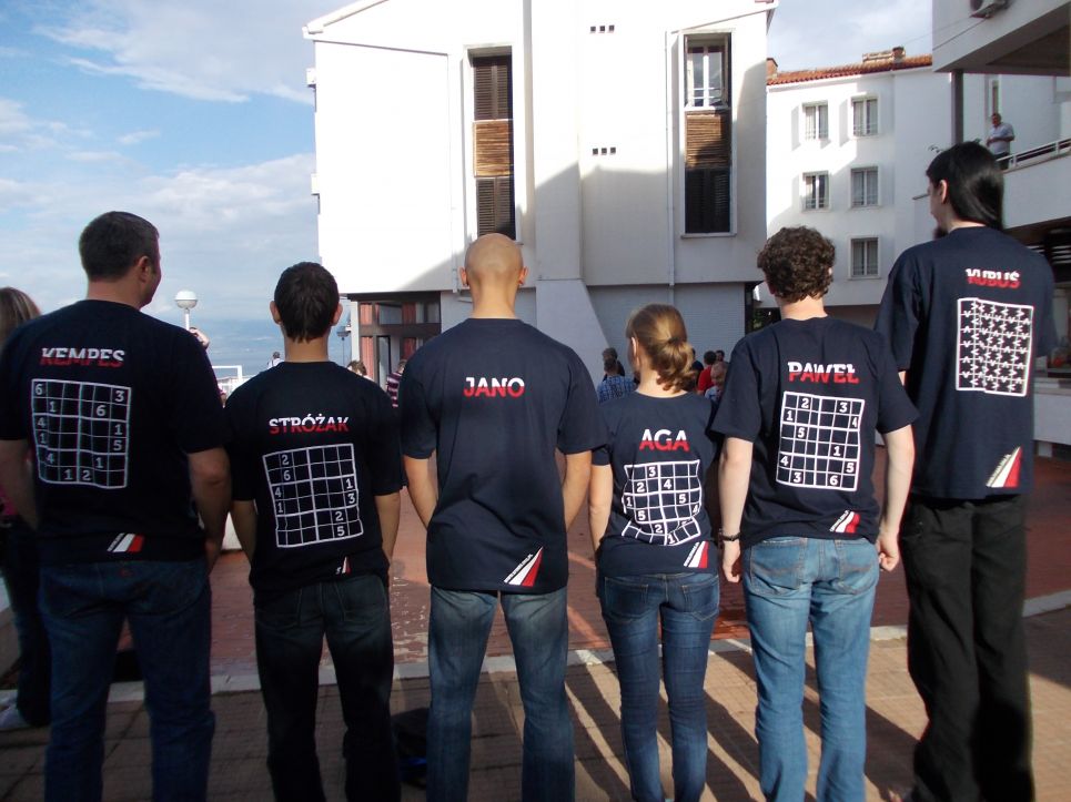 Wszyscy mieliśmy nadzieję, że Mistrz Polski w Sudoku, Jan Mrozowski, odzyska tytuł Mistrza Świata, który stracił rok temu w Egerze. Po pierwszym dniu zawodów Janek zajmował drugie miejsce, co zagwarantowało mu pewny awans do playoffów. Pozostali zawodnicy Polskiej drużyny, Paweł Rachel, Tomasz Stróżak oraz Agnieszka Buczma, zajęli odpowiednio 43, 50 oraz 57 miejsce, a Polska drużyna uplasowała się na 9. pozycji. Następnego dnia rano, najlepsza ósemka wystąpiła w playoffach. Przybrały one formę bezpośrednich pojedynków- pierwszy mierzy się z ósmym, drugi z siódmym itd. Do rozwiązania były zadania na flipchartach, a wygrywał ten, kto szybciej rozwiązał dwa z nich (jeśli po dwóch zadaniach był remis 1:1, decydowało ostatnie zadanie). Janek trafił na Chinkę Chen Cen, którą łatwo pokonał 2:0. Następnie w półfinale pokonał Hideakiego Jo z Japonii (również 2:0), by w finale trafić na innego Japończyka, Kotę Morinishi, który prowadził po pierwszym dniu i pewnie wygrał oba swoje wcześniejsze mecze. Tym razem zawodnicy mieli rywalizować do 3 zwycięstw (maksymalnie 5 zadań). Janek wygrał w pierwszym zadaniu, jednak w drugim Japończyk był szybszy. Trzecie zadanie okazało się piekielnie trudne dla obu zawodników, jednak to naszemu mistrzowi udało się je zrobić szybciej. W czwartym zadaniu Janek nie dał przeciwnikowi szans i po raz trzeci został Mistrzem Świata w Sudoku!
